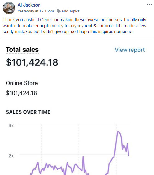 Hours upon hours of in-depth coaching videos walking you through every facet of the Shopify business. I cover everything including Shopify, Print on Demand, Facebook™ Advertising, Scaling, Product Research, and way more.