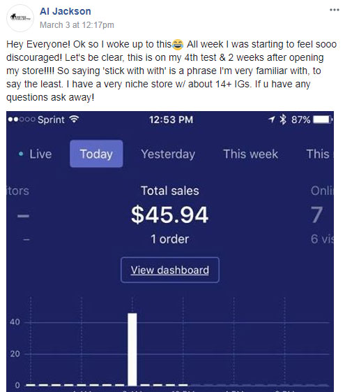 It's more than just a course! You get me as your eCom mentor. You'll get coaching and support in the private member's only group where I answer EVERY SINGLE QUESTION that gets posted. I personally take the time to answer each and every one that you post.