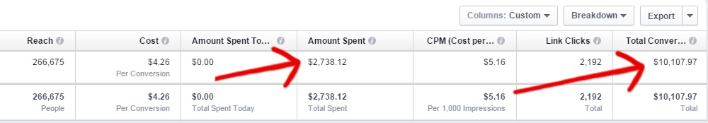 $2,738 spent on FB ads to make $10,107!