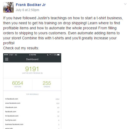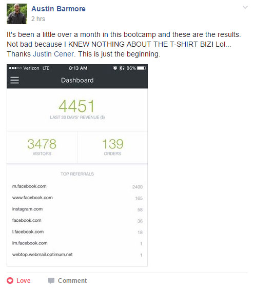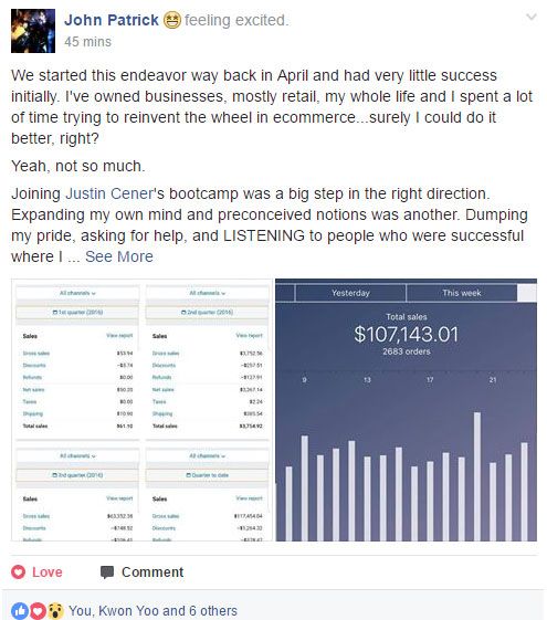 $18,000 in his first 19 days in the Bootcamp Program!